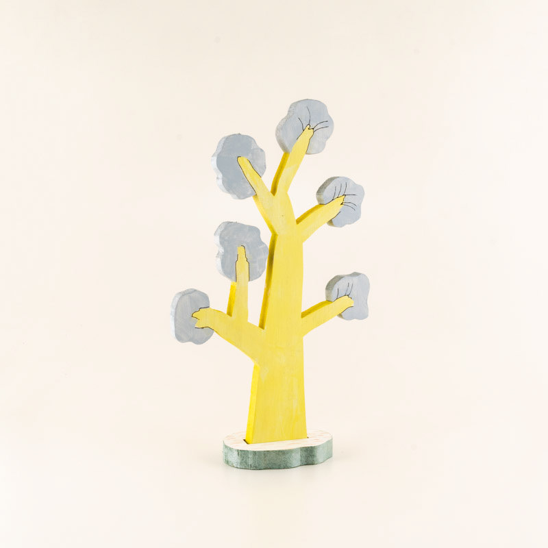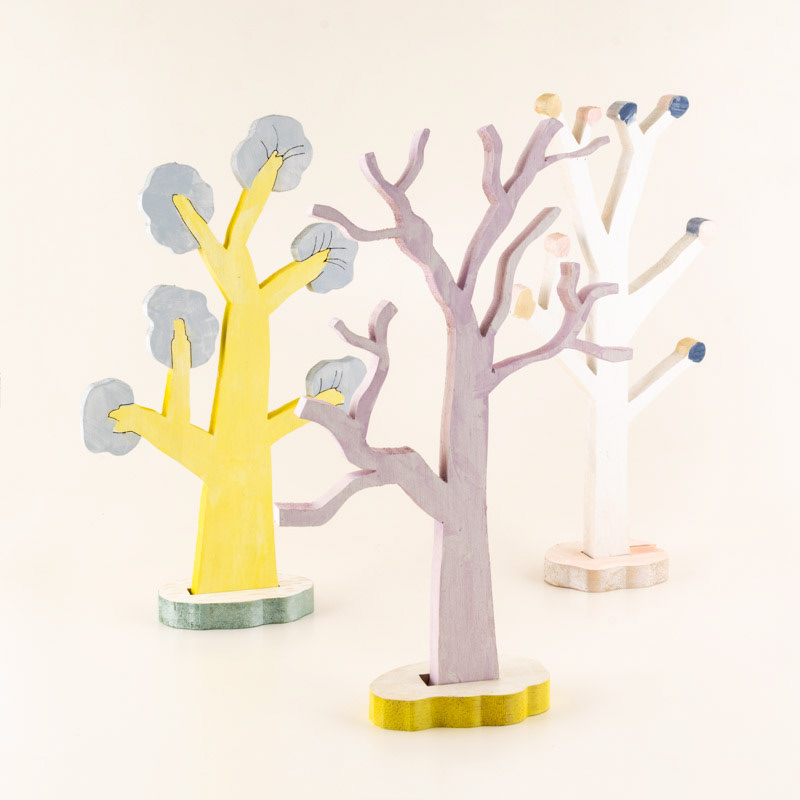 好きなツリーのかたちを選び、糸のこで木の板からちいさなツリーを作りましょう。切り抜いたら、好きな色をぬってオリジナルツリーの完成です。